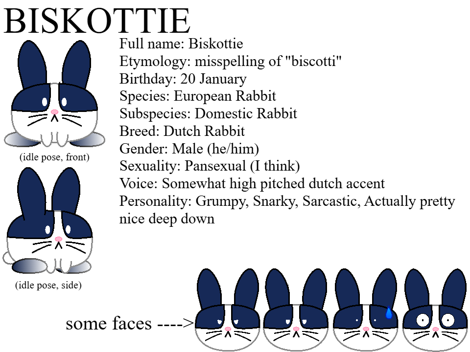 Biskottie is Natalie's pet rabbit. Except not really. He's actually more of a friend and a roommate. Also he talks.
